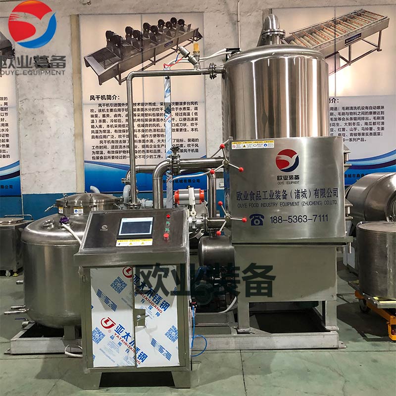 VF真空低溫油炸機顛覆了傳統意義上真空油炸機工作時間長、工作效率低的概念。我公司通過大量的客戶使用反饋及加工各種產品經驗外加汲取了國外設備的先進經驗,將設備進行升級改造,該設備同等型號下較傳統意義上的真空油炸機工作效率提高30%。且我公司每臺設備零部件均有存檔,方便為客戶提供便捷迅速的售后服務。 1、加熱、油炸、儲油、脫油、脫水、油過濾一體化設計,在真空下連續性完成,產品含油量低,產品處于真空狀態,在這種相對缺氧的條件下進行食品加工,可以減輕甚至減免氧化作用(例如脂肪酸敗、酶促褐變和其他氧化變質等)所帶來的危害。在負壓狀態,以油作為傳熱媒介,食品內部的水分(自由水和部分結合水)會急劇蒸發而噴出,使組織形成疏松多孔的結構。2、自動控制溫度和壓力(真空度),無過熱、無過壓,確保產品質量和安全生產。3、脫油采用變頻調速,適合含油率低和含油率高的所有產品。4、油水分離系統可將蒸發的水油冷卻分離,減少水循環的污染,提高水的反復使用率,減少油的損耗。5、油過濾系統:上下油罐、雙室加熱系統、單獨控制加熱、油炸時循環過濾油,使油脂始終保持清潔,且減少了油的浪費。6、該機采用不銹鋼材料制成,具有功效高、性能穩定、安裝使用方便特